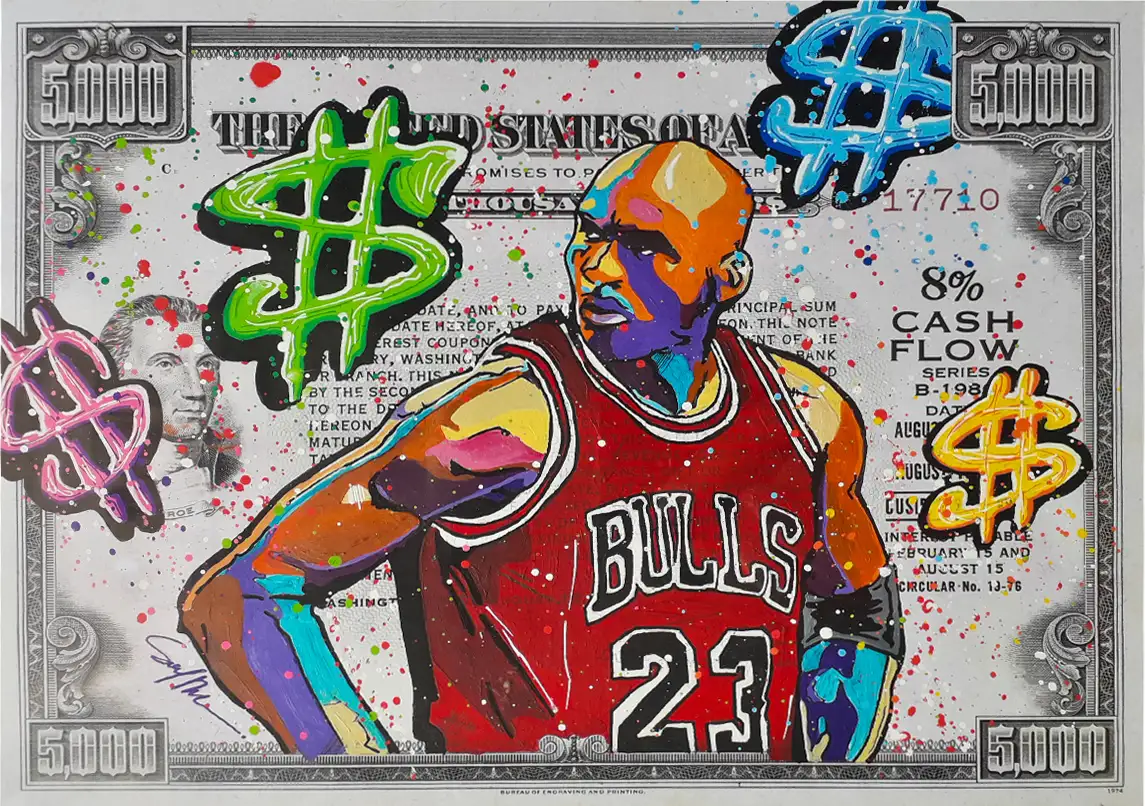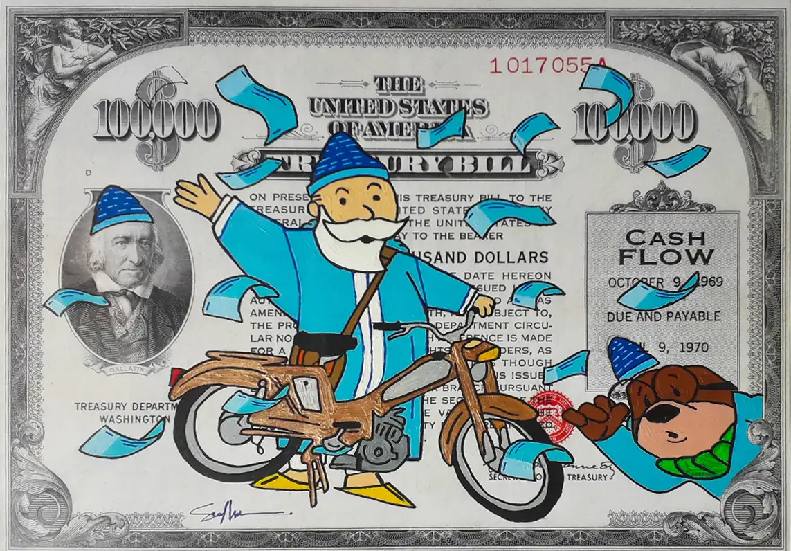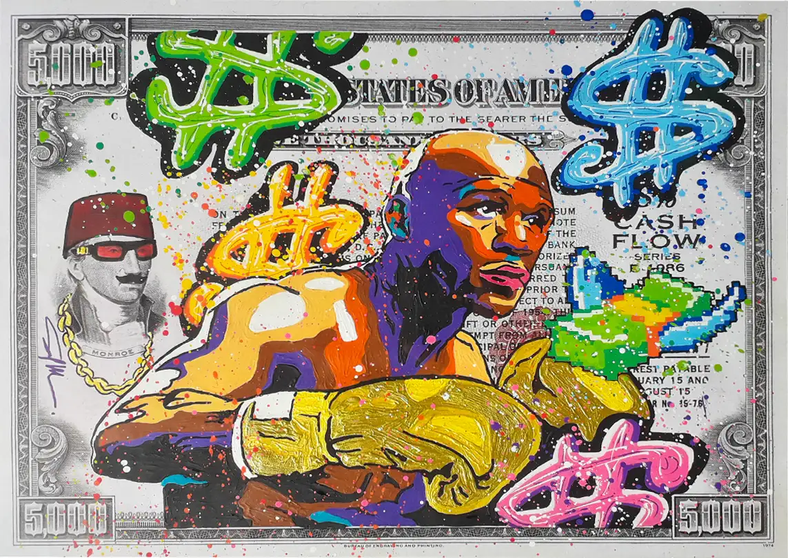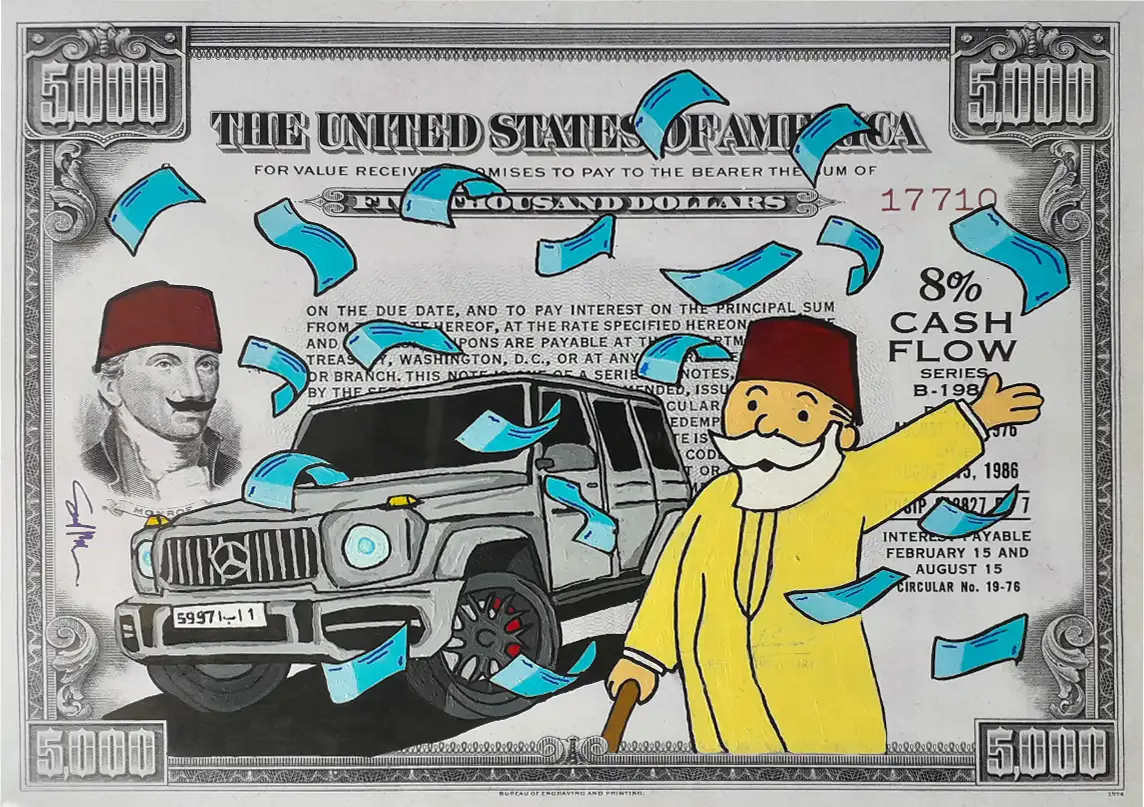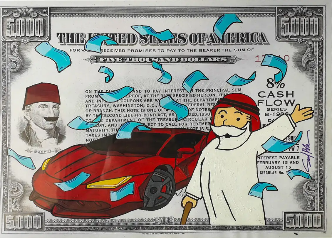 CASH FLOW Series is a pop art and street art series that highlights all signs and symbols of wealth, success, and especially capitalism elements through cartoon characters that fit the concept and the idea behind the series.