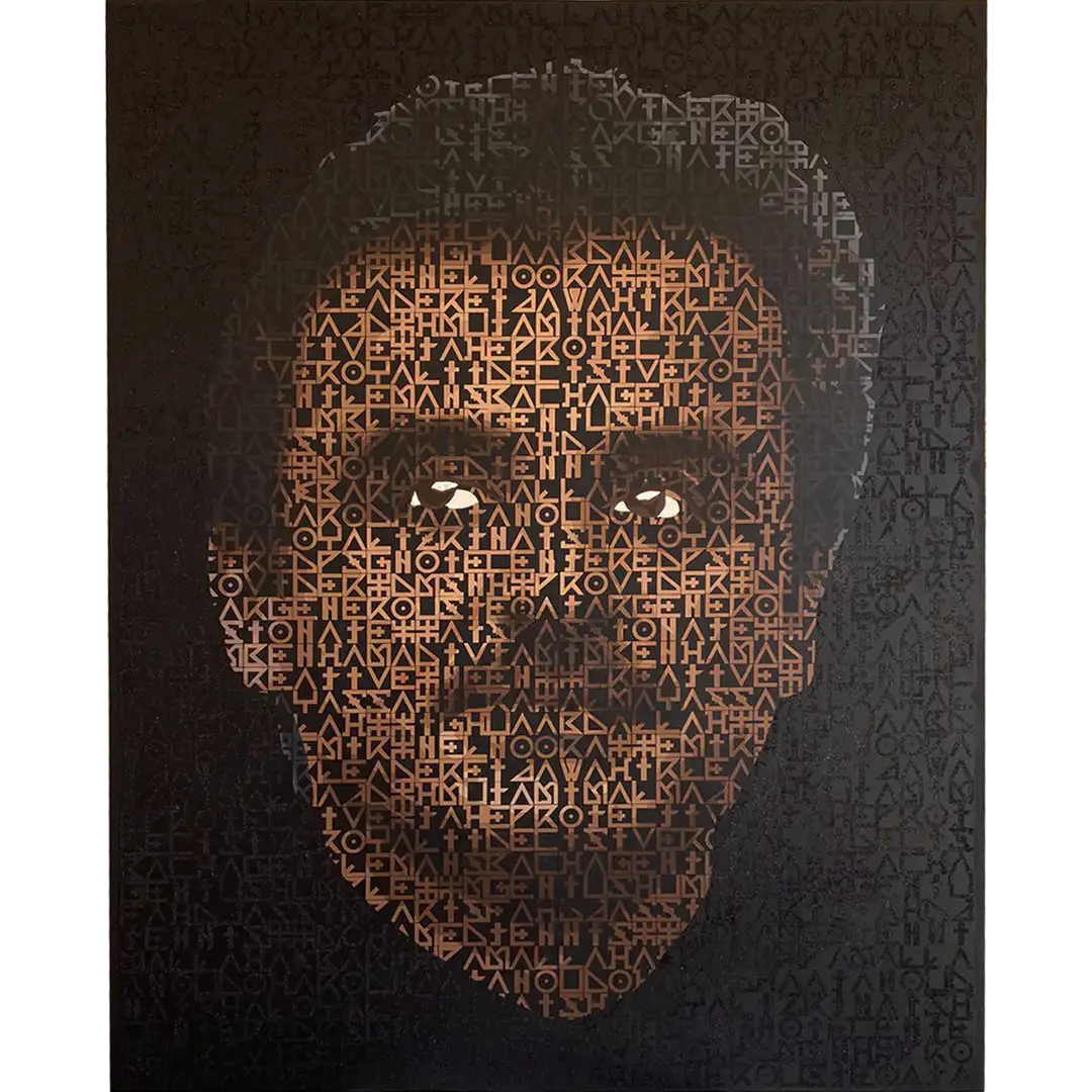 The CHLEUHISM nomination is taken from the word "chleuh" which means in our Moroccan dialect an Amazigh person it is a very popular nickname that we use in our daily conversations so I wanted to make it more known and global through the CHLEUHISM Series which highlights the three basic elements of my works which are Calligraphy, Portrait and Crossword puzzle.